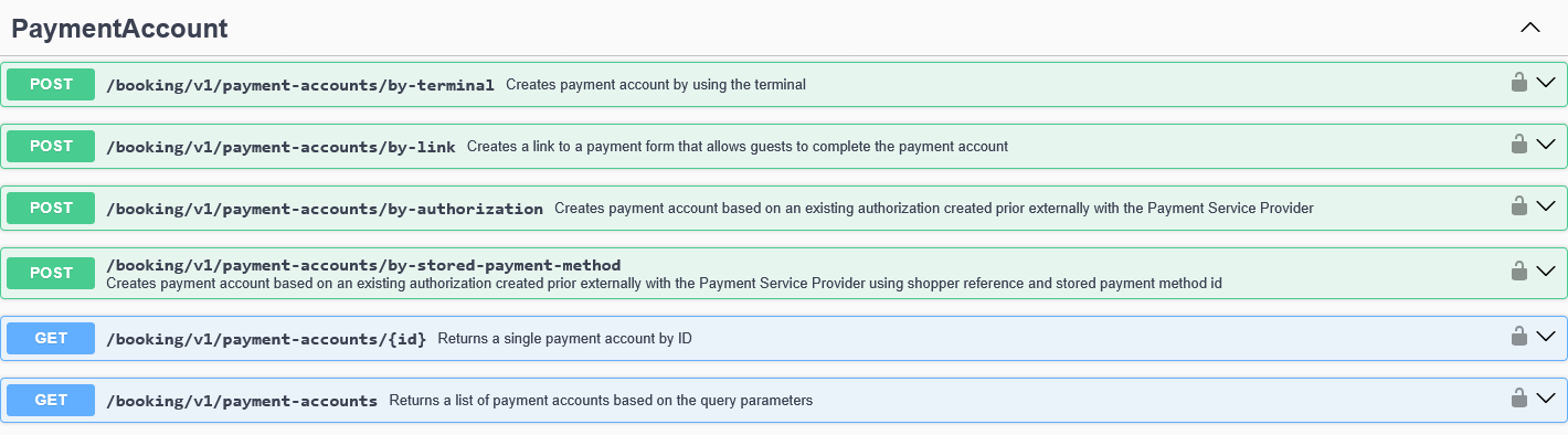You can find the detailed documentation for the API endpoints for Payment Accounts in Apaleo Booking module. Samples here are for illustration please refer to the API swagger documentation for the latest details.